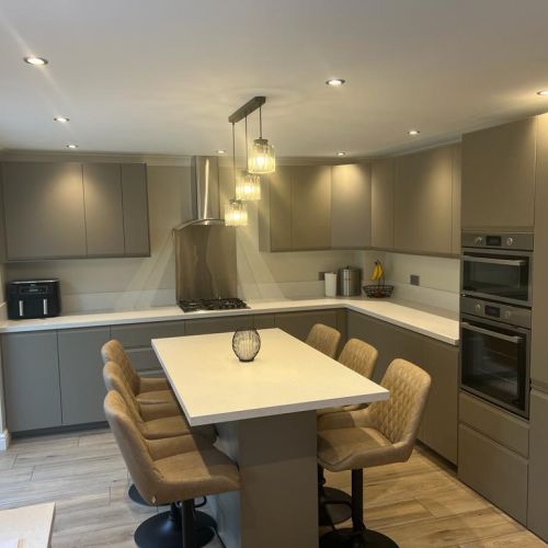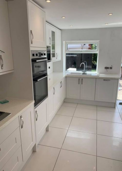 Zac and his team did an excellent job converting lounge and kitchen into one. This involved removing 2 doors and creating a new doorway. The new room was replastered and a new Wren kitchen fitted with all appliances. He also fitted the wood flooring and 3 additional doors. A new loft hatch was fitted and the loft boarded. Zac did all this in 3 weeks and did all we asked for. We are very happy with the end result and made the home more usable.